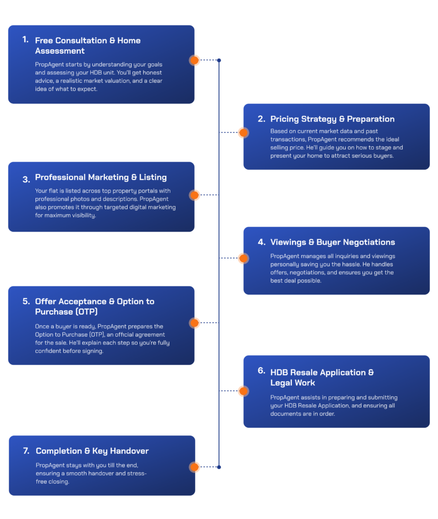 Once a buyer is ready, PropAgent prepares the Option to Purchase (OTP), an official agreement for the sale. He’ll explain each step so you’re fully confident before signing.