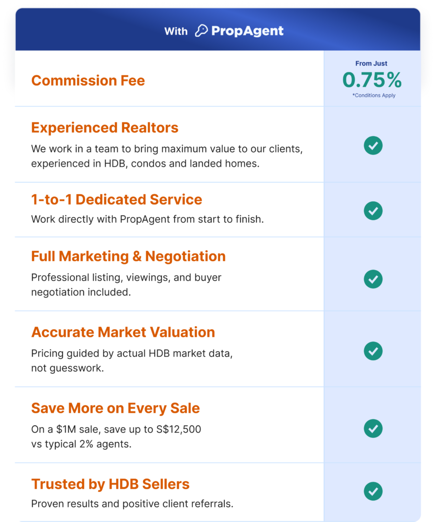 PropAgent is a team of experienced HDB specialists who believe we can do better for HDB homeowners by offering a lower fee.